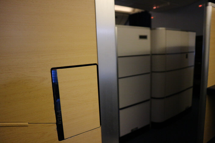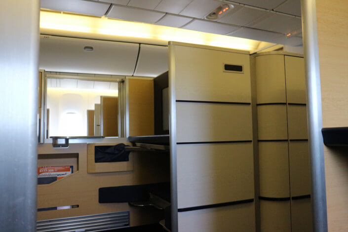 着替えている間に座席をフルフラットにしてベッドメイクしてくれます。着替え終わって出てくると服を預かって下さいます。よくファーストクラスに乗る時の服装はどうするべきかという論争がありますが、やはり服を預かってかけて頂く時にジーパンにTシャツではカッコ悪いんじゃないかなぁと個人的に感じました。僕は搭乗時カジュアルな格好ですが一応襟付きシャツにスラックスでしたのでこの時はこれでよかったなと思いました。