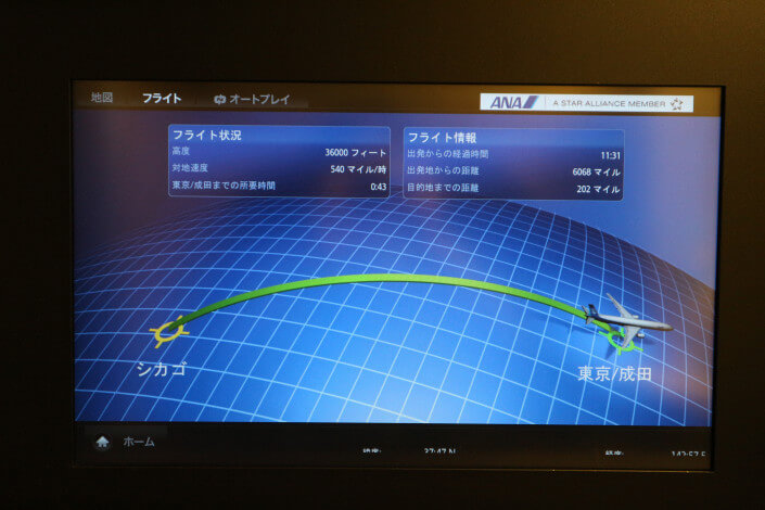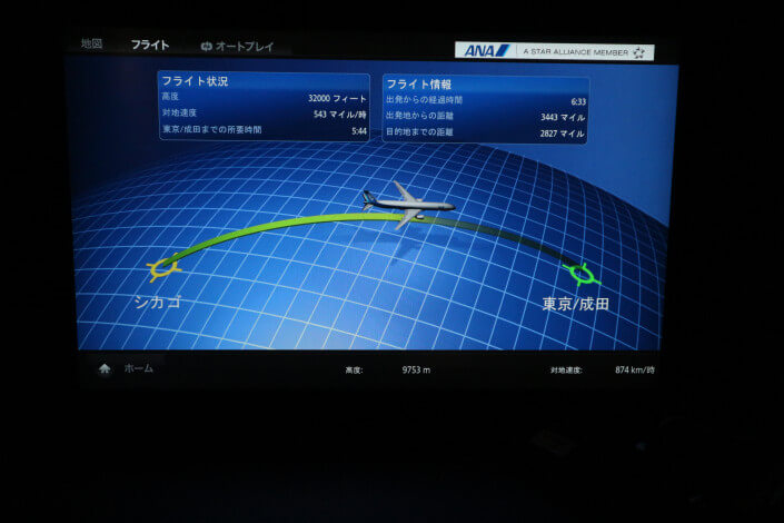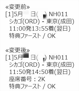 シカゴ発成田行きのNH11便(シカゴ11:50→成田14:50)でした。