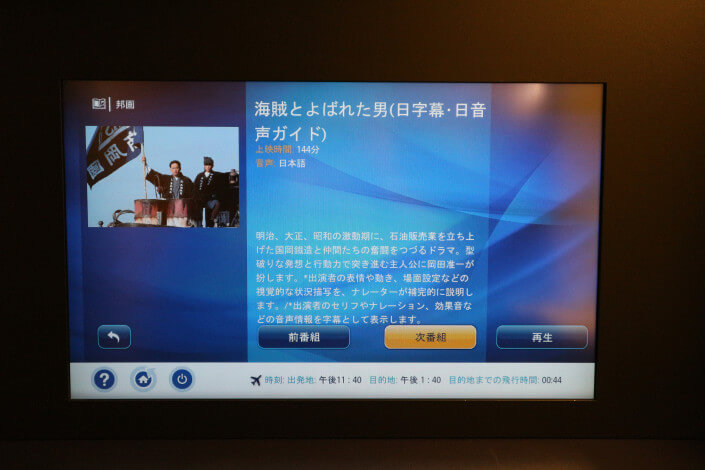 その後は大きな液晶モニターとノイズキャンセリングヘッドホンで映画を楽しみます。