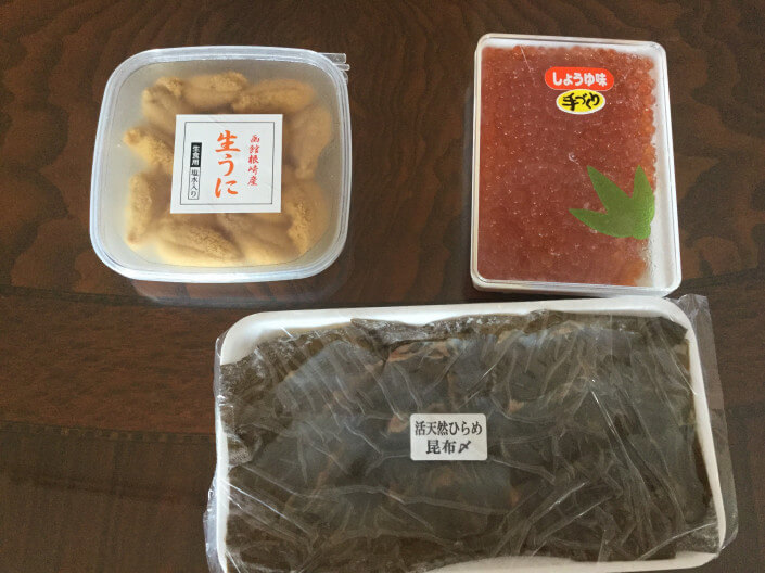 その後はうろうろして高野鮮魚店でお刺身とウニ、一夜干しを購入しました。
