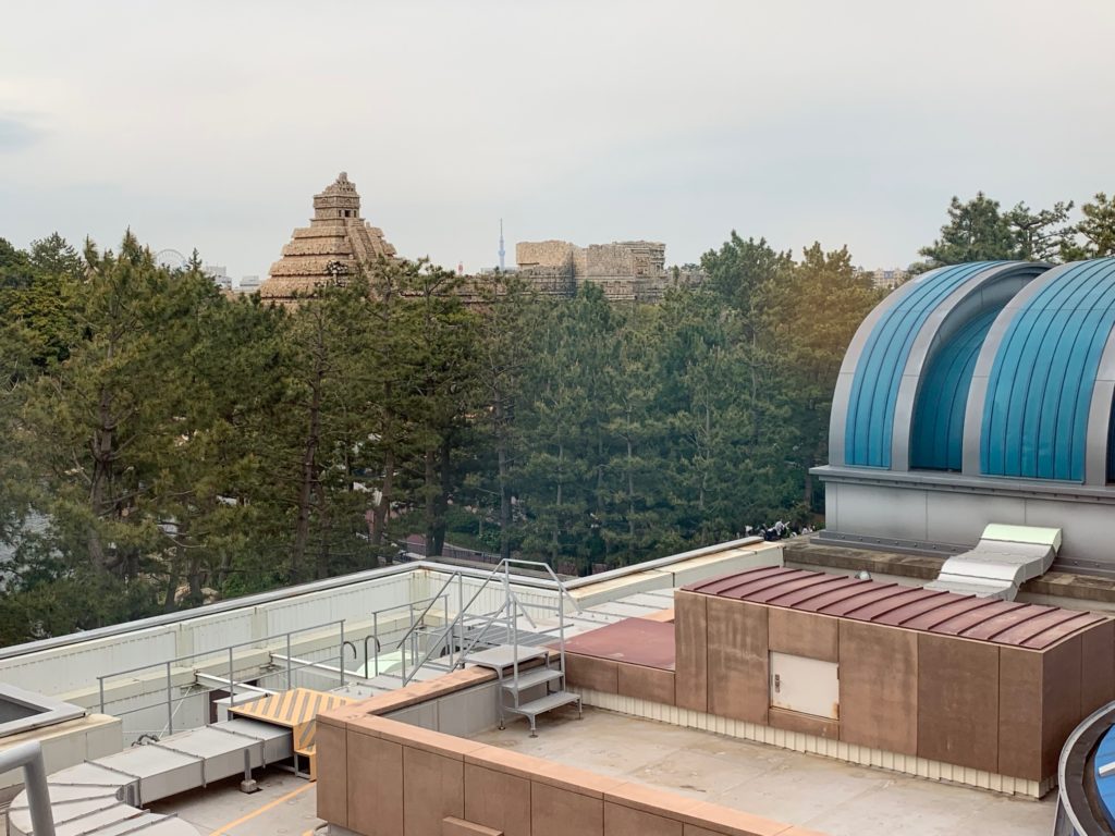 インディ・ジョーンズ・アドベンチャーの向こう側にはスカイツリーが見えます