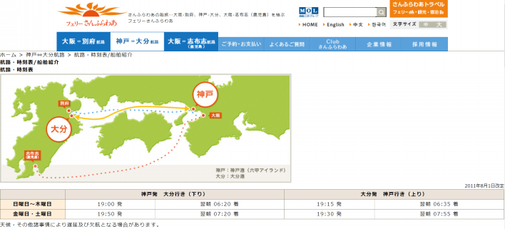 別府⇔神戸航路のさんふらわあごーるどは2007年、さんふらわあぱーるは2008年