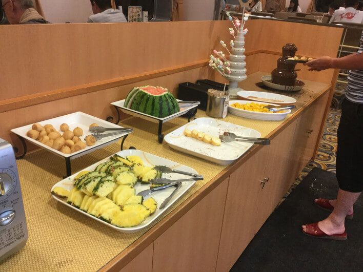 デザートコーナーにはチョコレートファウンテンがあり子供たちが喜んでいました