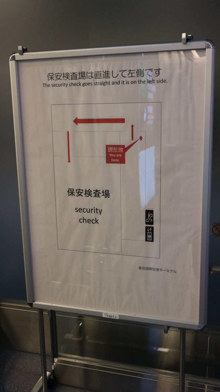 もちろん手荷物検査もガラガラです。この検査場は上の地図の「出国手続き(北)」のようです。この時点ではどのあたりなのか全然わかっておらず羽田国際線ってめっちゃ空いてるんだと思いましたが後で出国手続き(中央)を通るとまぁまぁ人がいました。ひょっとしたらこちらの検査場は穴場なのかもしれません。