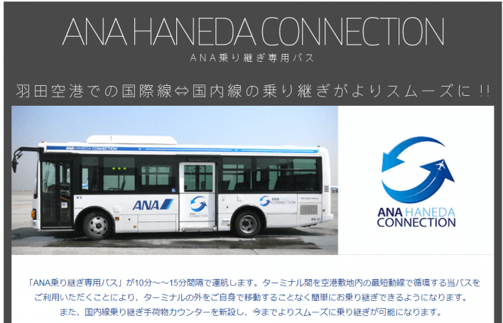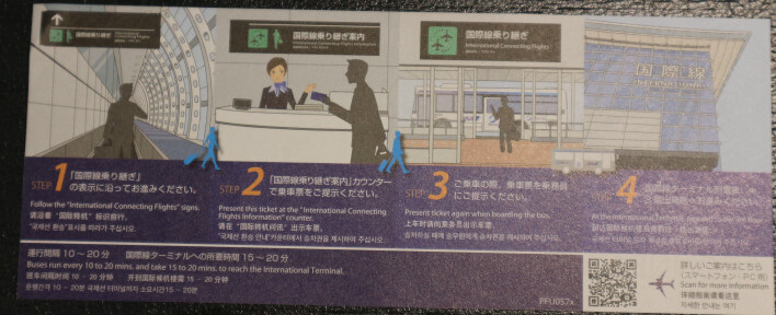 公式ホームページには以下のような案内があります。国内線⇔国際線乗り継ぎの時はこのバスを使えばターミナルの外に出なくても乗り継ぎができるというわけです。