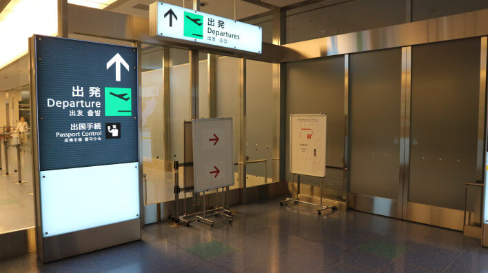手荷物検査を終えると18:46出国審査です。こちらは人も少なくすんなりと出国も終え拍子抜けです。