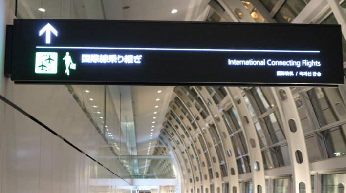 どこのゲートに到着するかによりますが「国際線乗り継ぎ」の案内に従って進みます。