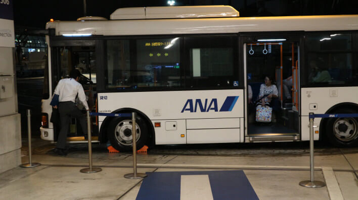 普段通れないところを通っていくのでちょっと新鮮で楽しいです。車内アナウンスでは15-20分かかるとのことでしたが15分もかからずに18:40に国際線ターミナルのバス到着口に到着しました。