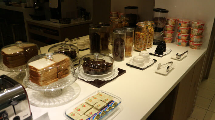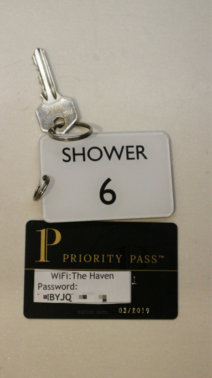 受付でパスポートとプライオリティパスを提示します。プライオリティパス利用の場合の滞在は3時間までです。メニューを見せてくれてホットミールは1つ無料だけどいる?と聞かれます。今回は機内食を軽く食べたばかりだったのでパスします。シャワーを使いたいというとカギを貸してくれます。ラウンジ内のWi-fiのSSIDとPASSが書かれた紙も渡してくれました。