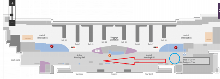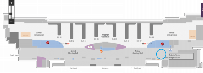 もちろんT31階のArrival Hallに着きます。下の地図の青丸あたりです。