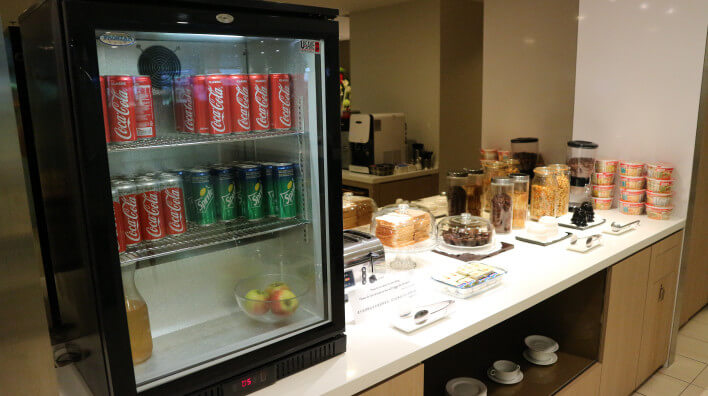 奥にはドリンクやおつまみ程度のフードもあります。アルコールは有料ですが十分に感じます。