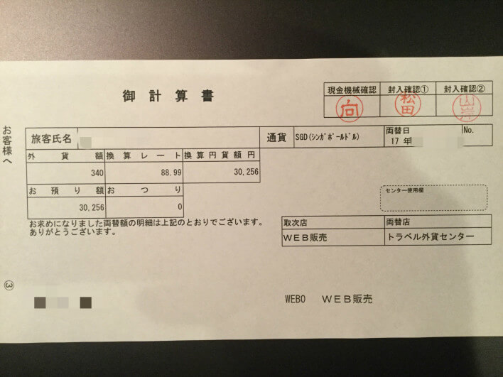 他の方法と比べてちょっと早めに両替したのでレートの変動はあるかもしれませんがシンガポールドルについてはレートはよくありませんでした。しかも宅配無料となる30000円以上分の外貨を両替しなければいけないのでレートがよくない時は辛いですね。