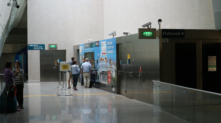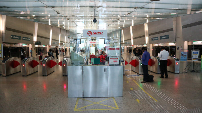さらに駅に向かうエスカレーターを降りるとMRTのチャンギ空港駅です。エスカレーターを降りた正面に駅の窓口があります。