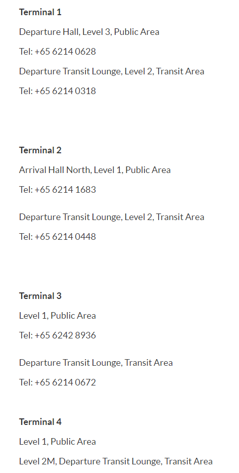 手荷物預かり所の詳細についてはチャンギ空港の公式ホームページをご参照ください