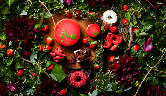 「ライブステーション」では、シェフが目の前で焼き上げる一口大サイズの苺パンケーキの トッピングには今季のテーマカラーとなる3色(赤・茶・白)のコンディメンツより選ぶことができ、中にはセイボリーメニューとして楽しめる鴨パストラミやフォアグラムースといったホテルらしいアイテムも。 美味しくも美しい苺の森で、寛ぎのひと時をお愉しみください。シェフのイチオシアイテム