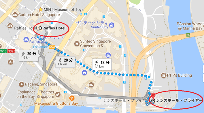 ラッフルズホテルからてくてく15分くらいかけてシンガポールフライヤーまで歩きます。