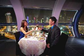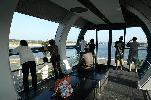 面白いのは僕が乗った隣のゴンドラです。上の写真に写っているゴンドラの中をよく見て頂くとテーブルとイスがセットされているのが見えると思います。シンガポールフライヤーでディナーを楽しんだりシャンパンを楽しんだりアフタヌーンティーを楽しんだりするプランがあるようです。