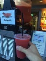 フローズンストロベリーダイキリを飲みながら夜景待ちをします!見た目可愛らしいのにけっこうアルコール度数高くてびっくりしました