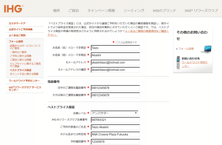 ベストプライス保証の申請は、IHG公式サイトから有効な客室予約を完了してから24時間以内にオンライン申請フォームを送信していただく必要があります。