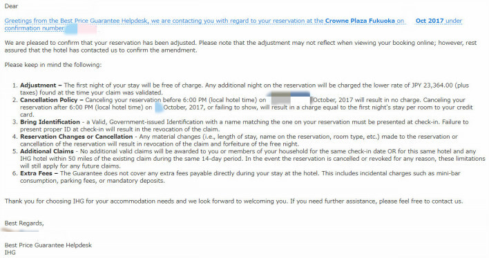 今回はIHGの最低価格保証である「ベストプライス保証」を申請しましたのでその方法と内容をご紹介したいと思います。そして、申請が認められたにも関わらず、宿泊したホテルでごたごたがあったのでその顛末についても報告し、今後どうすればそういったことを防げるのか考えてみました。
