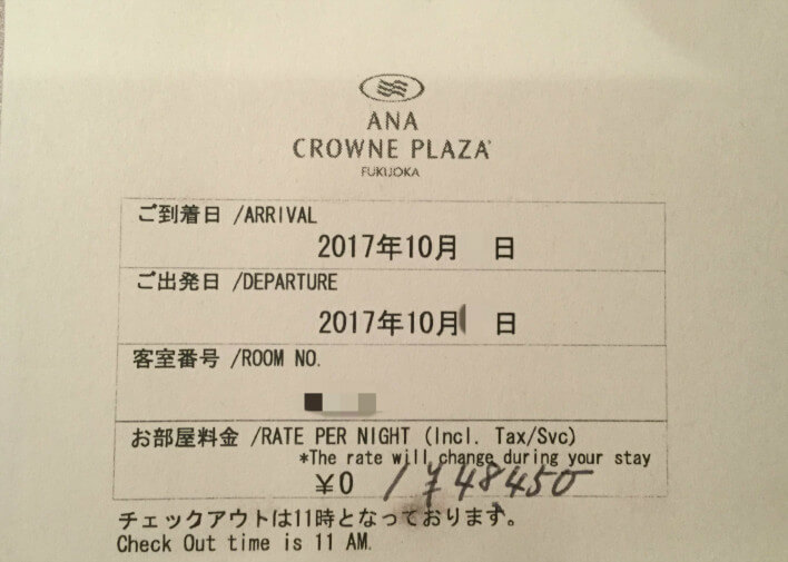 2か月半後実際にホテルにチェックインしてもらったカードが以下のようなものでした