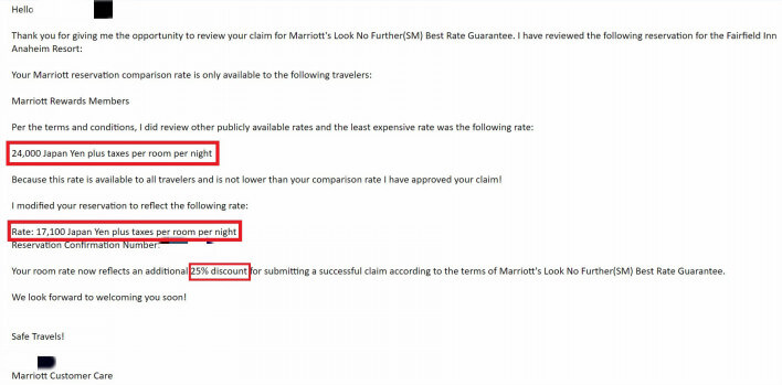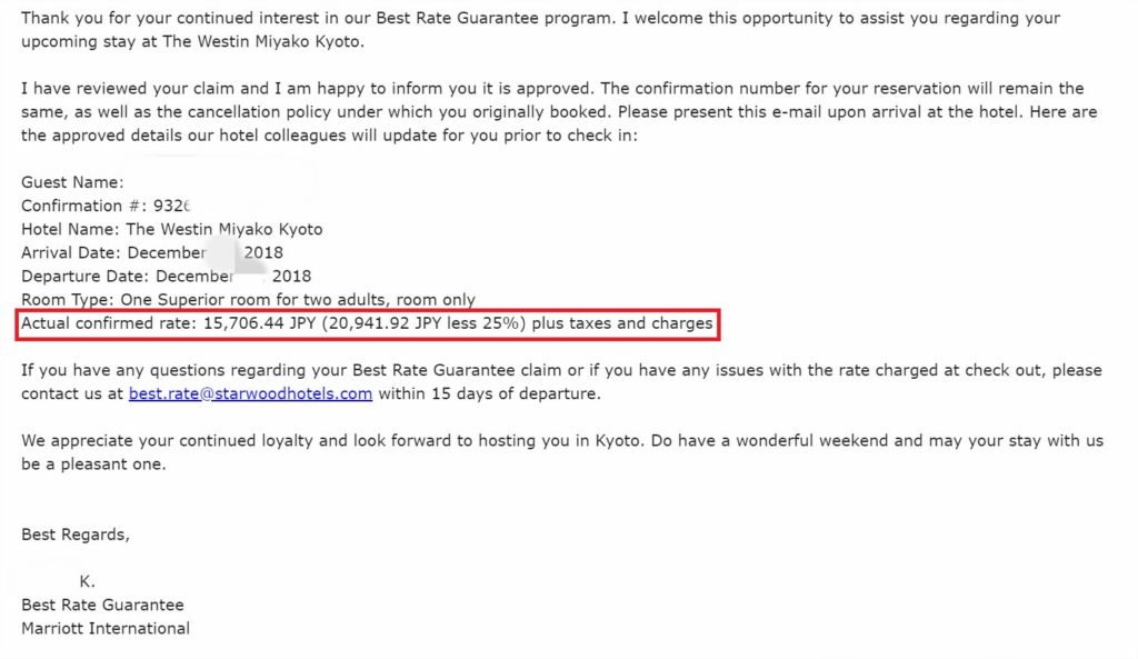 (2020.5最終更新)マリオットの最低価格保証である「ベストレート保証」の申請方法と25%割引に成功した実例をご紹介します。最低価格保証とは、有名ホテルブランドが自社の公式ウェブサイト以外の第三者サイト(Hotels.com, Expediaなど)で「同じ条件」でより安く予約できることを、公式ウェブサイトの予約から「24時間以内」に申請したらその価格より割引しますよというもの(サービス?)です。