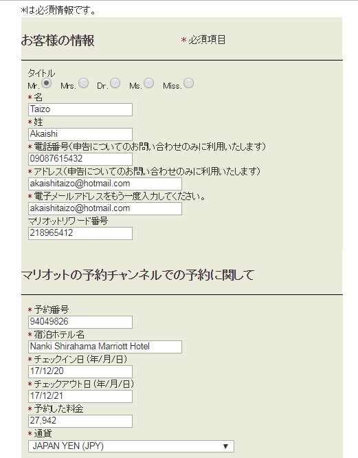 Marriottもやりとりするのは主に外国の方なのでなるべく英語で記入します。