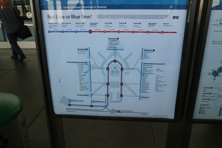 空港に到着します。Terminal3なので歩いても行けるのですがせっかくなのでAirtrainを使います。これを使えば広いサンフランシスコ国際空港内でもターミナル間移動が簡単です。