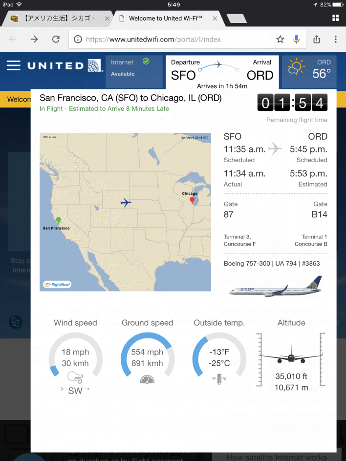 次にユナイテッド航空のホームページを見ているとサンフランシスコ→シカゴ便はいろいろな機材が飛んでいます。ふと見ると