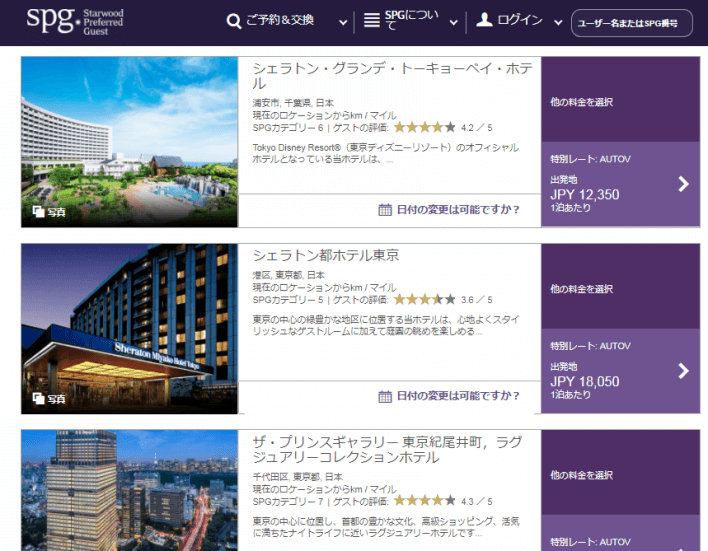 先ほどのSPG自動車ホテルプログラムのホームページから検索してみます