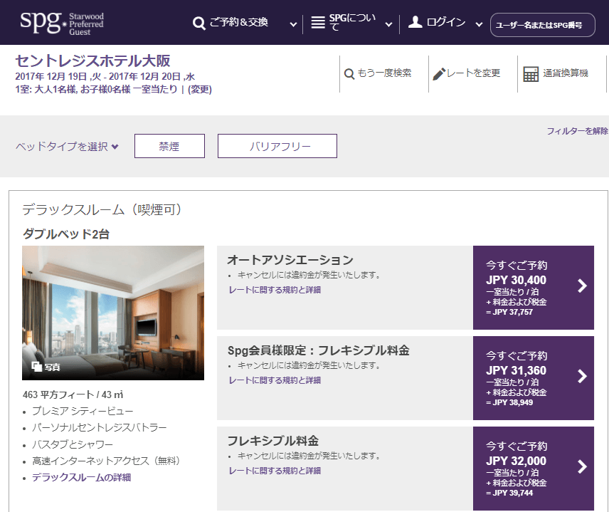 同様にセントレジス大阪でも「オートアソシエーション」の方がSPG会員料金より安くなっていました!