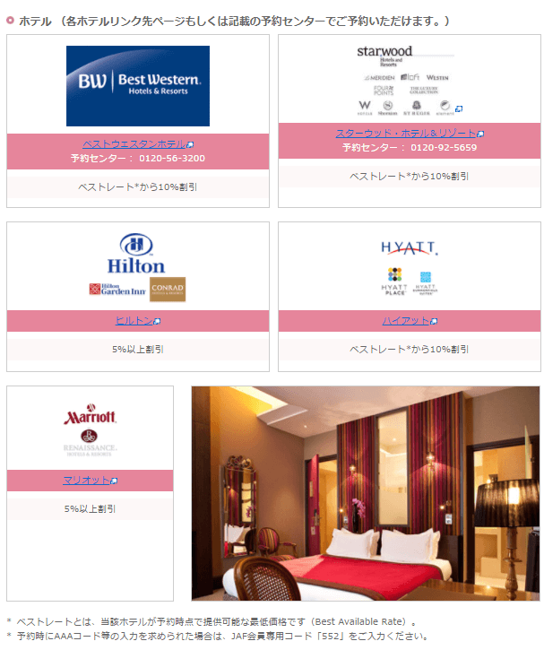 AAA割引料金が適用されるホテルチェーンはJAFのホームページによると