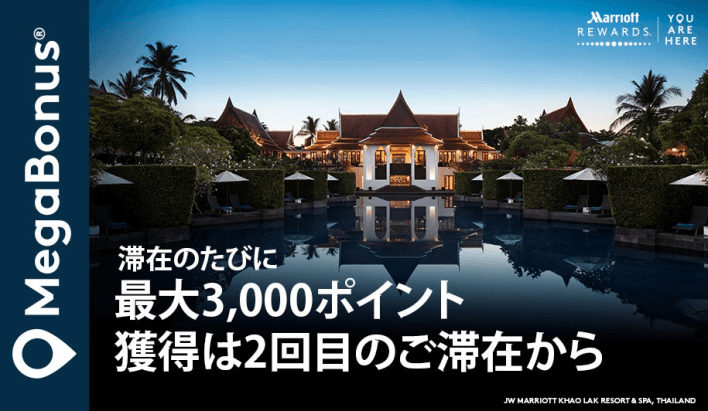滞在: 2018年1月16日から4月15日までの期間中に、世界各地のプログラム参加ホテル/リゾートのいずれかにご滞在ください。 ポイント獲得 2回目のご滞在から1滞在につき2,000ポイントを獲得でき、滞在に週末の夜が含まれる場合は、さらに1,000ボーナスポイントを追加で獲得できます。獲得上限は最大50,000ポイントです。