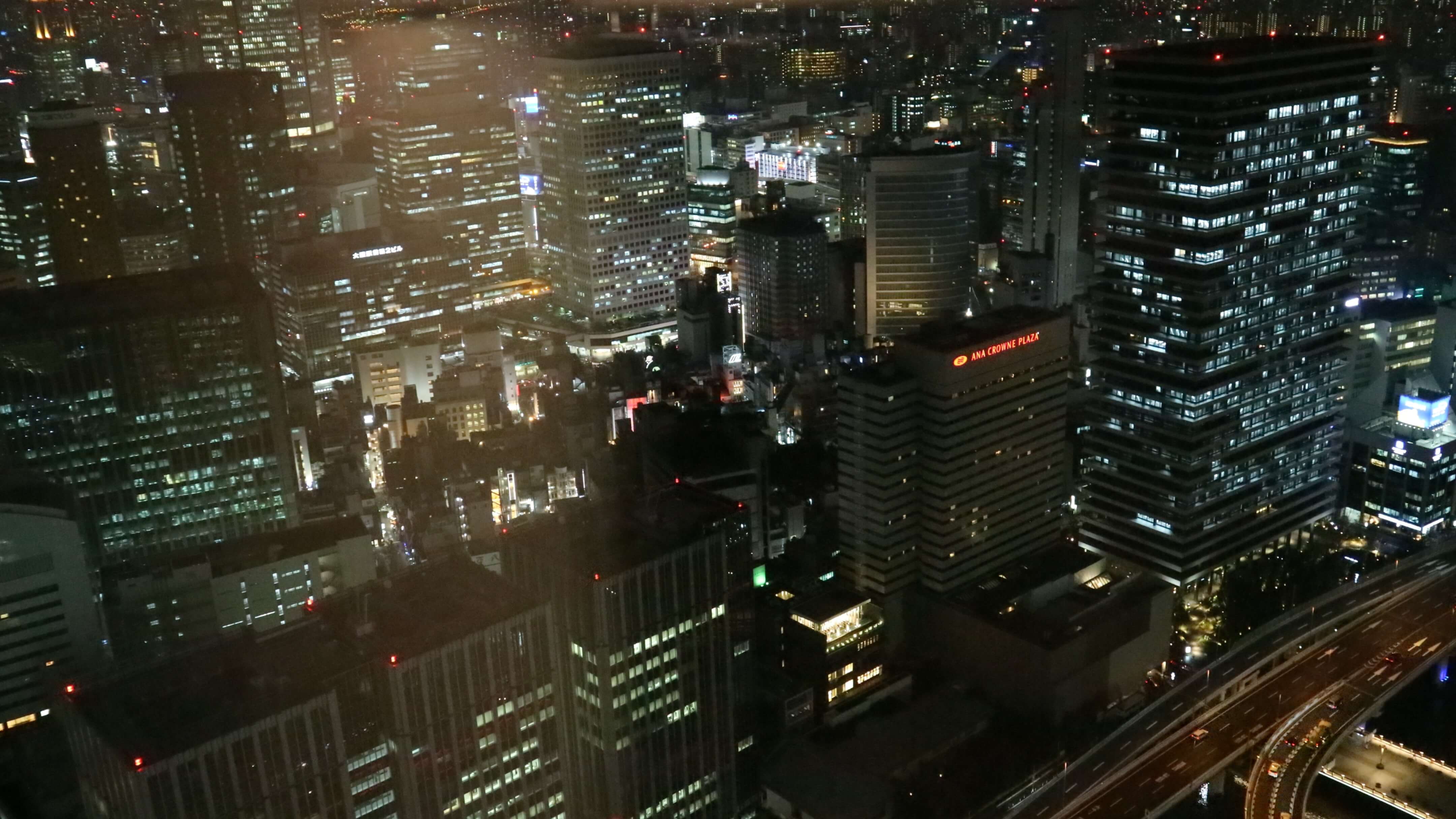 この写真は北新地を見下ろしています。写真の一番右側の高いビルは北新地の新ダイビルで31階建て高さ148mあるのですが見下ろせます!その左隣のANAクラウンプラザホテル大阪は23階建て高さ87mなのですがとてもちっぽけに見えます…