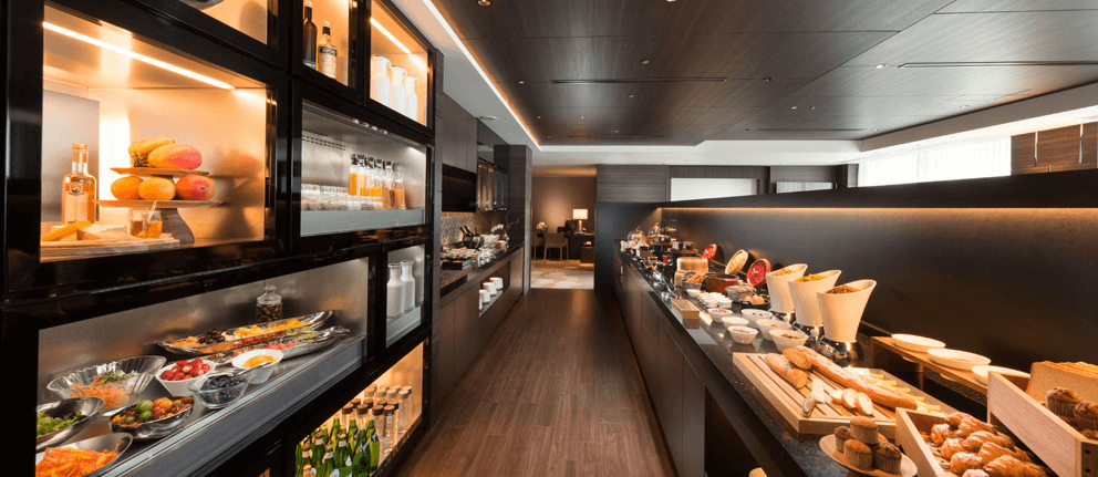 ラウンジの窓と反対側の壁沿いにフードカウンターがあります(これまた全体の写真を撮るのが憚られたため公式ホームページから写真お借りしています)
