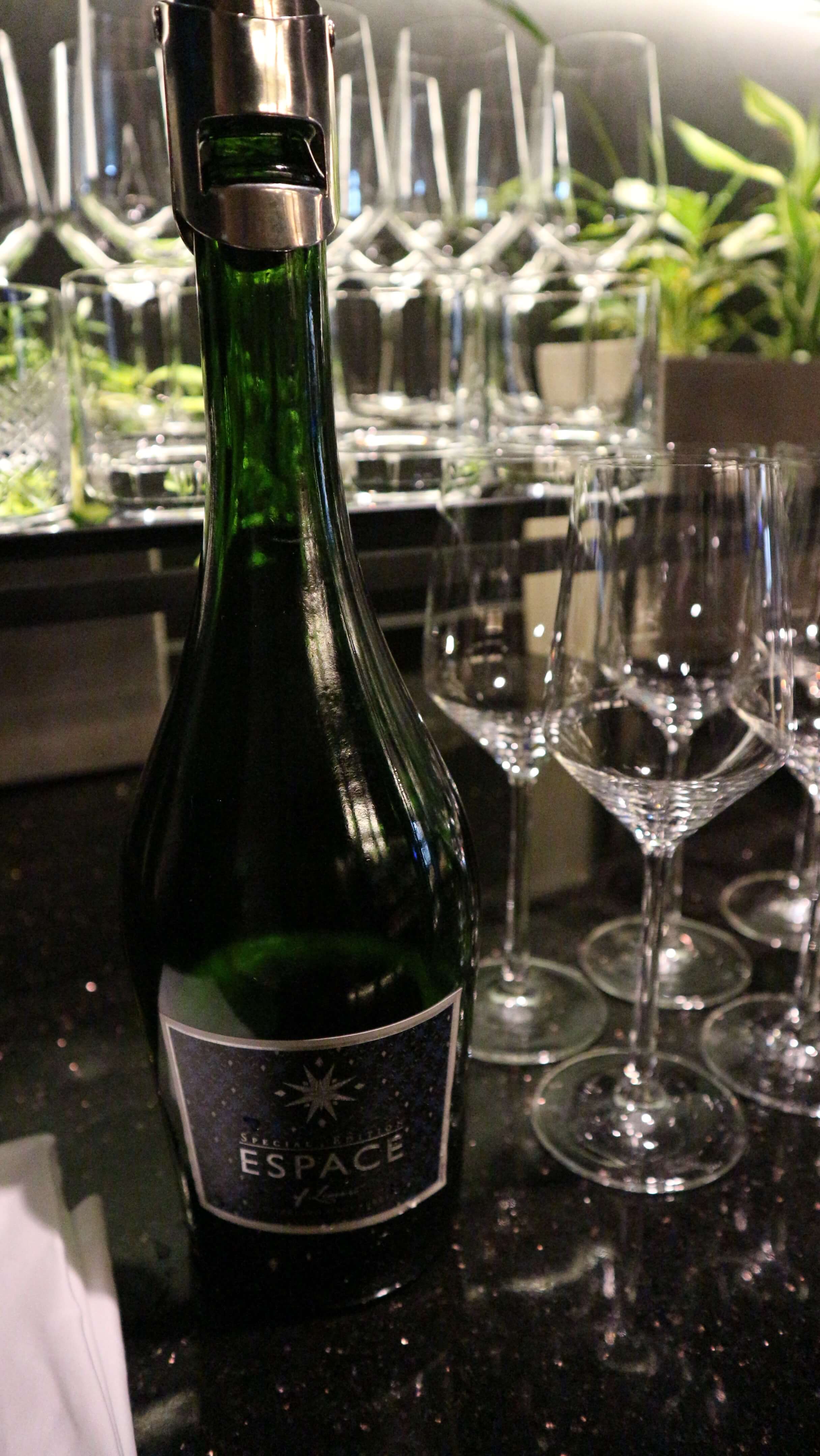 カウンターの入り口側にはスパークリングワイン、白ワイン、赤ワイン、リキュールなどが並んでいます。
