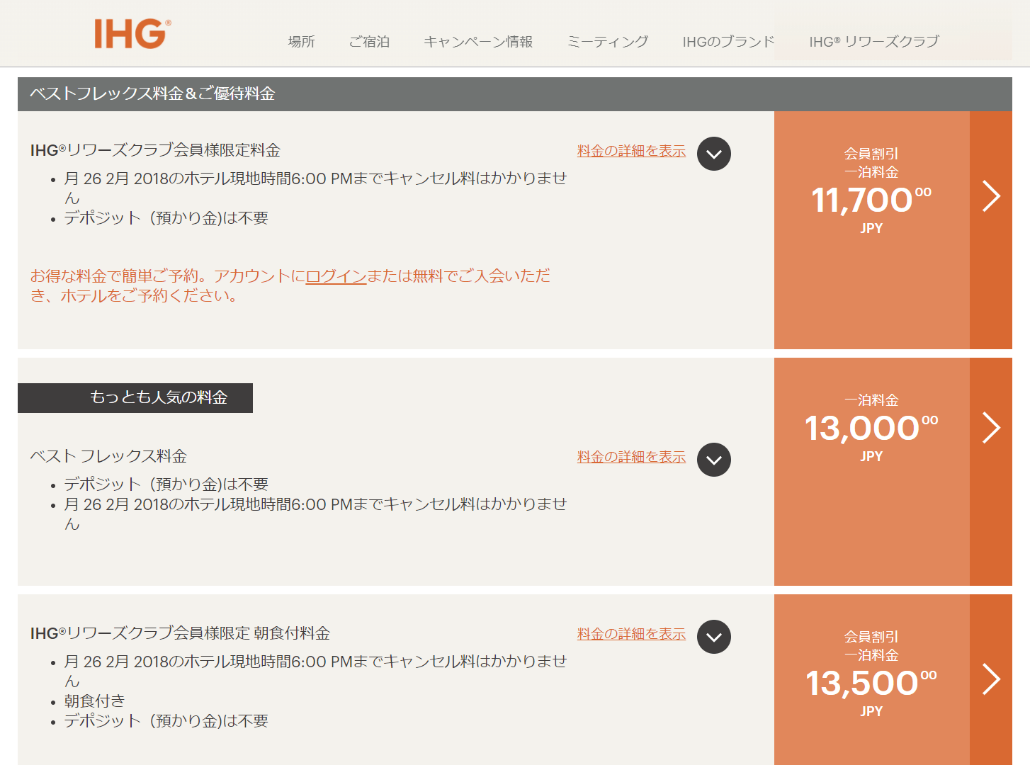 先ほども述べましたがIHGグループは公式サイトが2種類ありますのでSFCプランを予約する時も対応が異なります。本当にややこしい(笑)