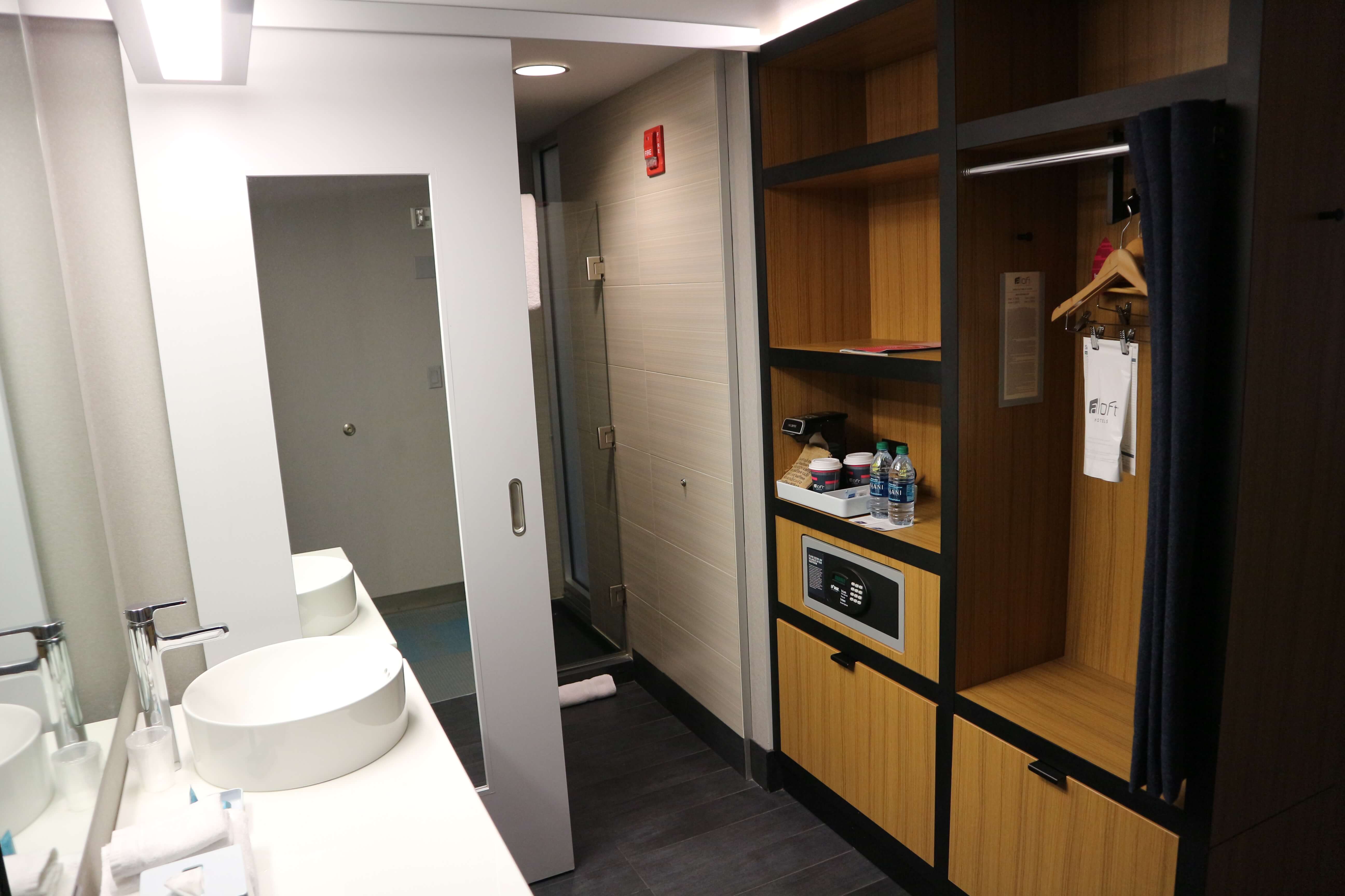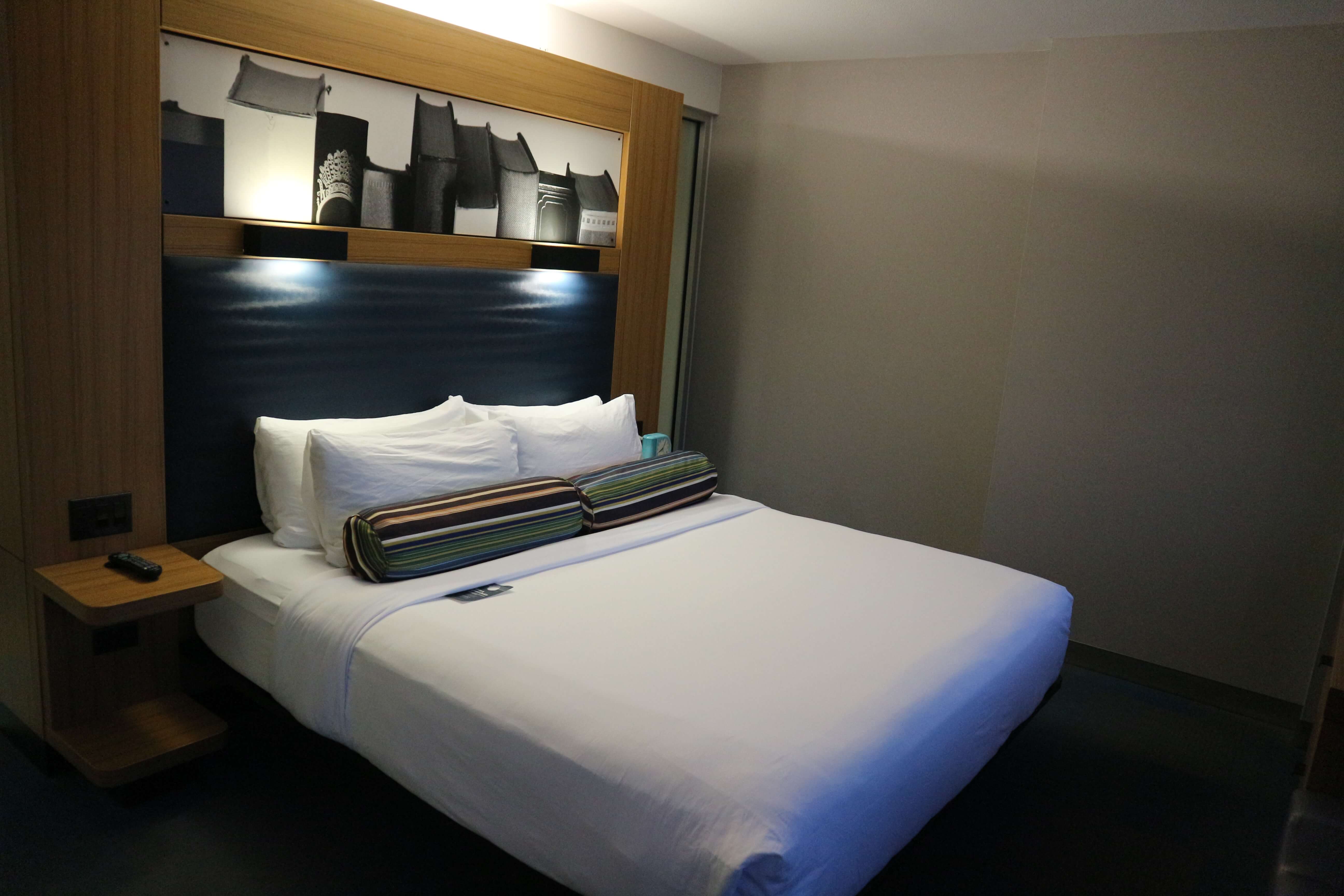 こちらのホテルはアロフトルーム(キングベッド1台orクイーンベッド2台)、バリアフリールームしか選択肢にありません。今回は出張で一人なので迷わずキングベッド1台を予約です。