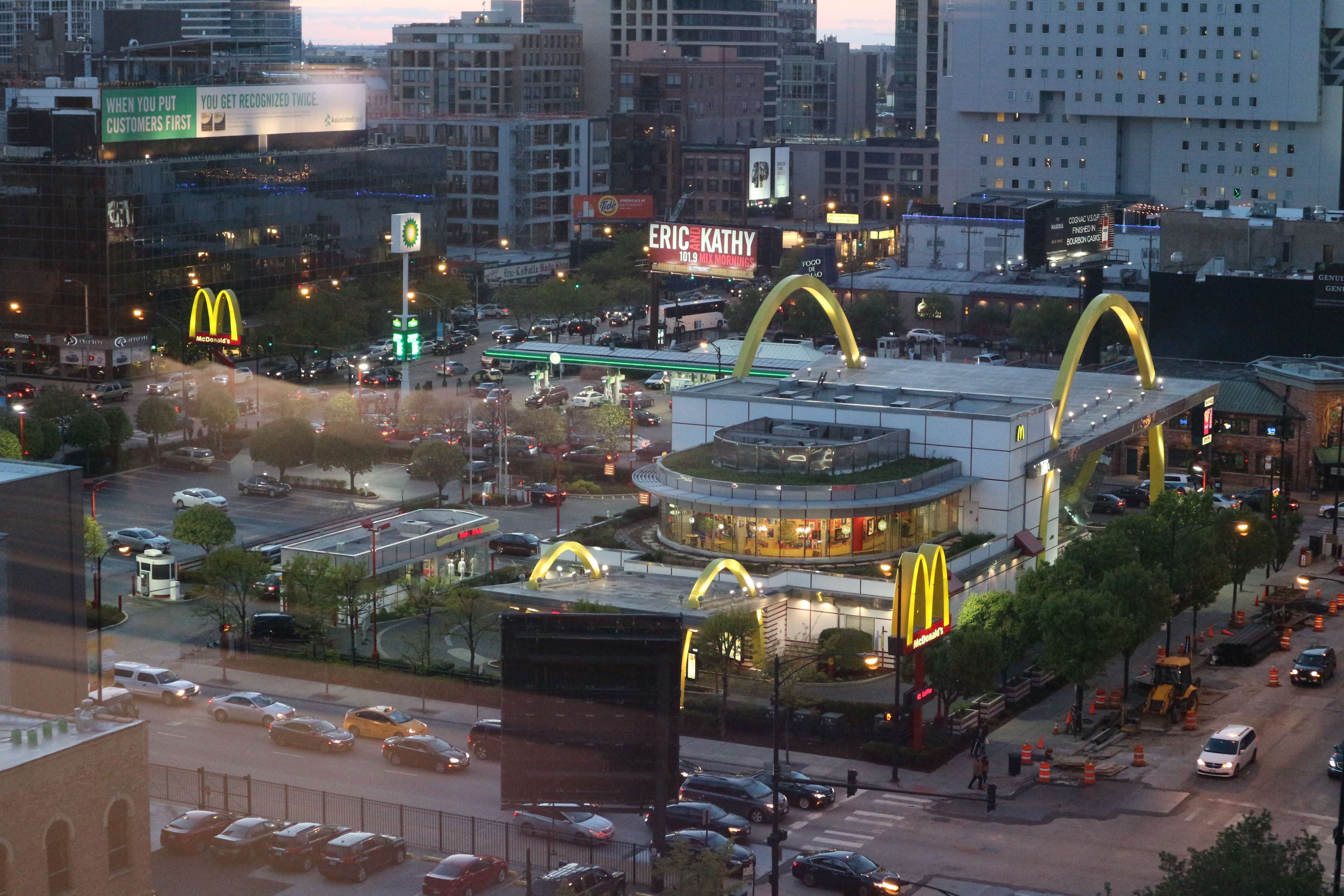 窓の外にはシカゴ名所のひとつであるロックンロールマクドナルドが見渡せます!