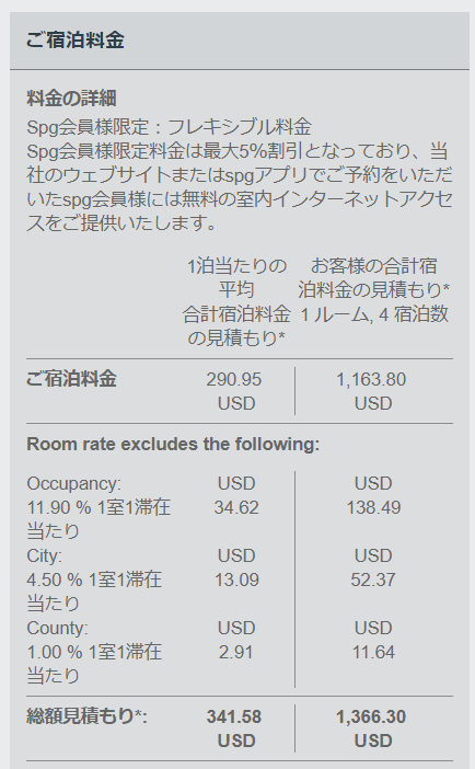 そしてこの時期にアメックスプラチナでSPGが2滞在でボーナスポイント(1滞在目1500スターポイント、2滞在目2500スターポイント)のキャンペーンを行っていたのでSPG系に宿泊することに決めました。
