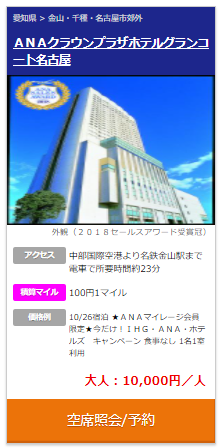| ANAクラウンプラザホテルグランコート名古屋 | 10,000円 | ¥10,200