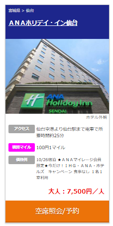 | ANAホリデイ・イン仙台 | 7,500円 | ¥6,840