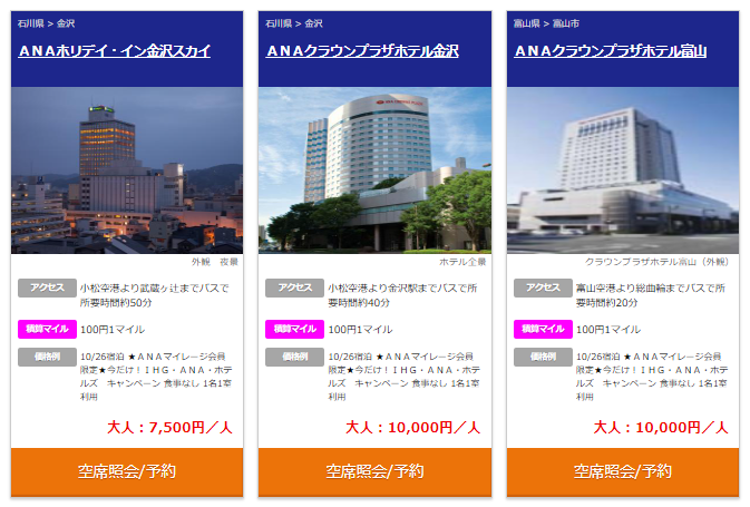 | ANAホリデイ・イン金沢スカイ | 7,500円 | ¥5,950
