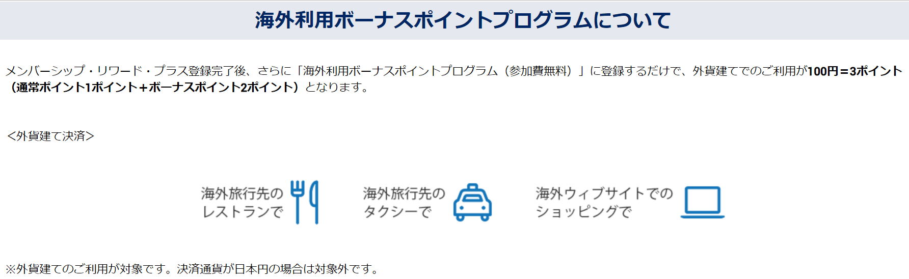 海外利用ボーナスポイントプログラム(海外利用で3%ポイント還元)