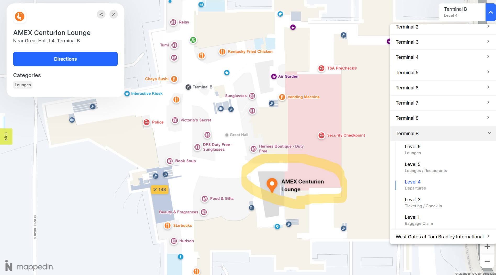 ロサンゼルス国際空港アメックスセンチュリオンラウンジの場所