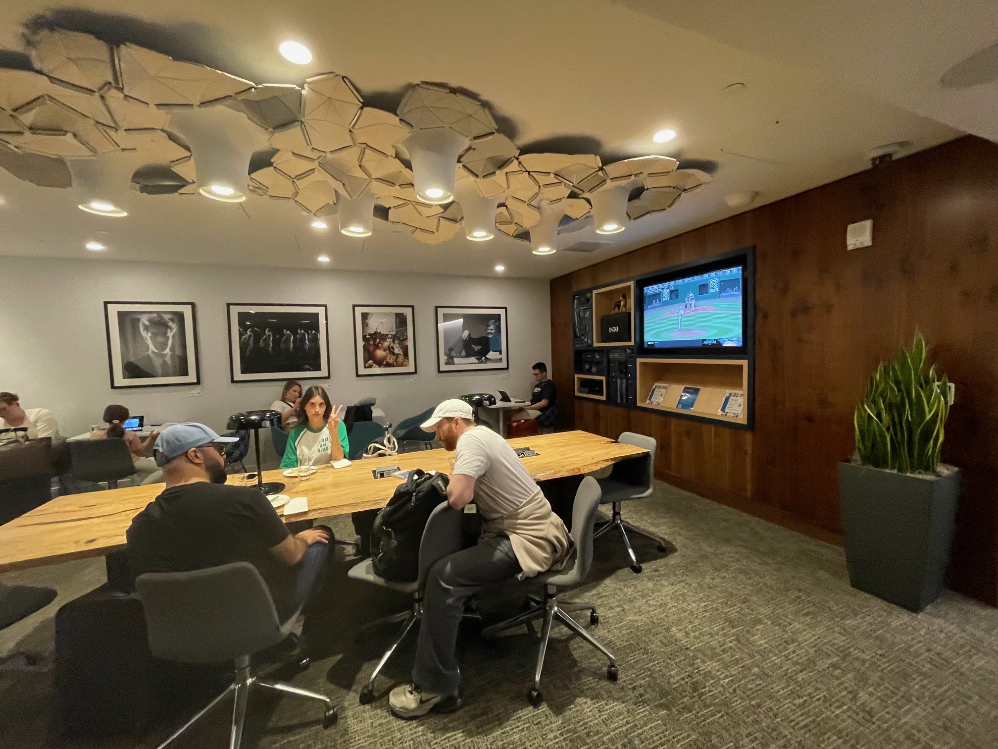 ラウンジ内はソファ席、テーブル席、半個室タイプの席など様々な席がありました。