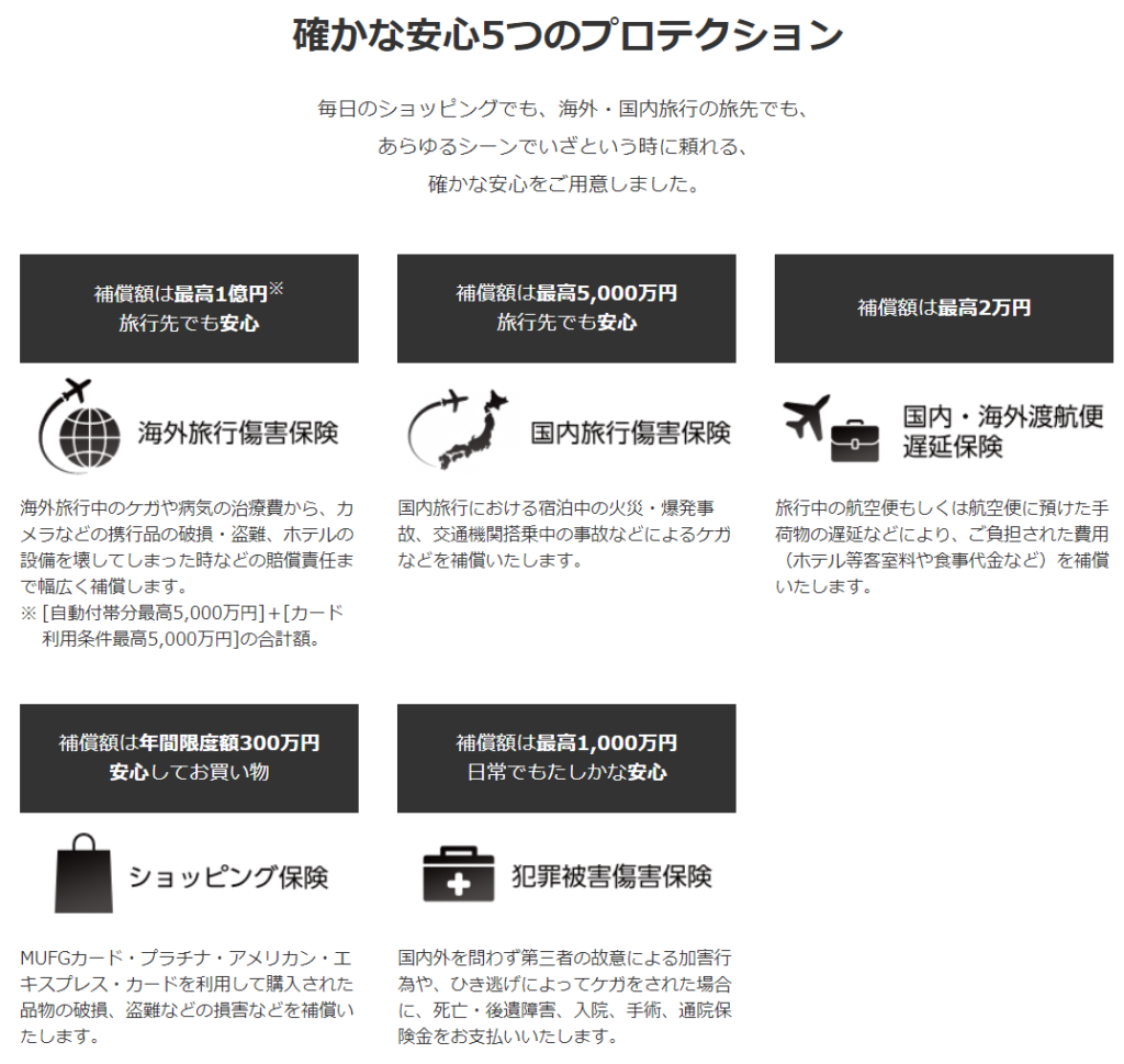 それでは一つずつMUFGプラチナアメックスの特徴やサービスをチェックしていきましょう