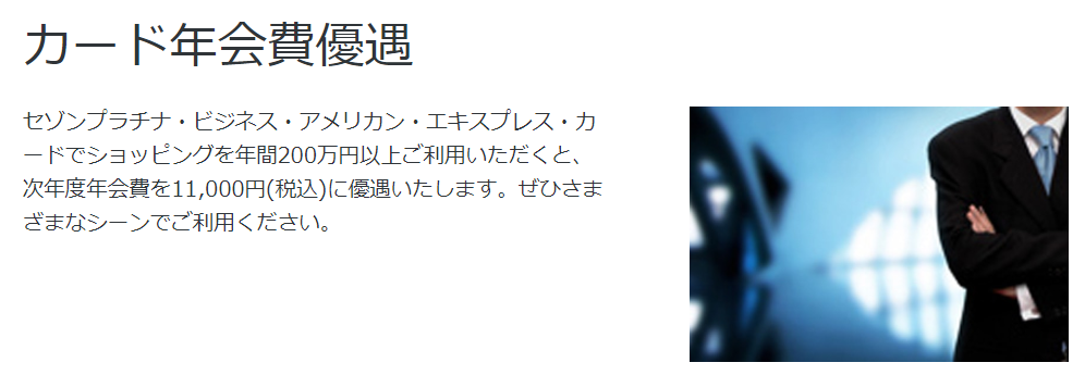 旅行に年に何回か行く方で年会費がそこそこ安いアメックスブランドカードを持ちたいと思われた場合はアメックスとセゾンカードが提携して発行しているセゾンプラチナ・ビジネス・アメリカン・エキスプレス・カード(セゾンプラチナビジネスアメックス)が候補に挙がるでしょう。