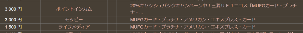 繰り返しになりますが、当ブログではポイントサイトの紹介はしておりませんが、ポイントサイトを経由するとポイントがもらえますのでお得です。現在は以下の画像のように3000円相当のポイントがバックされます。