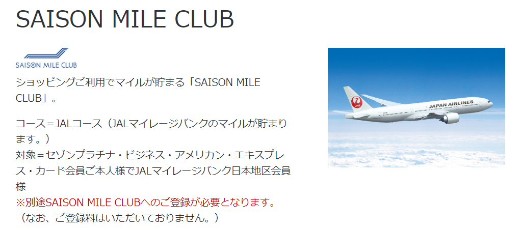 「SAISON MILE CLUB」でJALマイルも貯まりやすい